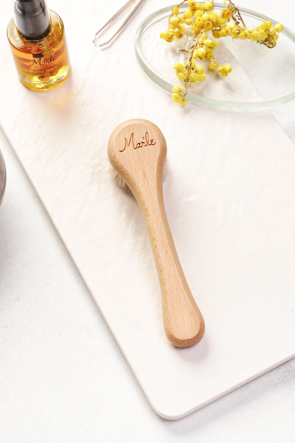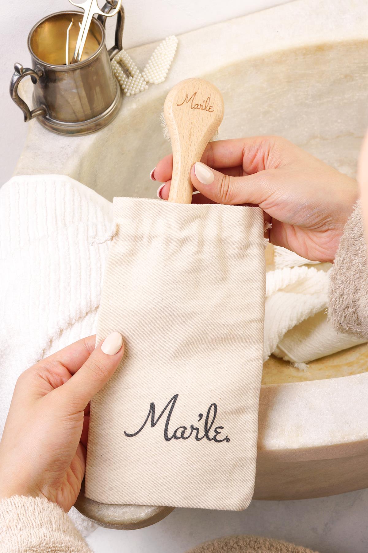 Mar’le %100 Doğal At Kılı Yüz Bakım Fırçası, yüzdeki kan dolaşımını hızlandırmak, cildi ölü hücrelerden arındırmak ve gözenekleri temizlemek için özel olarak tasarlanmış %100 doğal ahşaptan üretilmiş ergonomik saplı bir bakım ürünüdür. Düzenli kullanımda ince çizgi ve kırışıklıkların görünümünü azaltmaya, göz altı şişkinliklerini hafifletmeye ve cilt tonunu eşitlemeye yardımcı olur. Kuru fırçalama tekniği sayesinde ciltte biriken ölü hücreleri nazikçe temizler, fazla yağı ve kiri arındırarak gözeneklerin açılmasını sağlar. Böylece cilt nefes alır, toksinlerden arınır ve daha pürüzsüz bir görünüme kavuşur. Cilt bakım rutininizin ayrılmaz bir parçası olacak Mar’le %100 Doğal At Kılı Yüz Bakım Fırçası, sentetik kıl içermez ve at yelelerindeki kıllardan özenle seçilerek üretilmiştir. Ürün, %100 pamuk ham bez saklama kesesi ile birlikte gönderilmektedir.