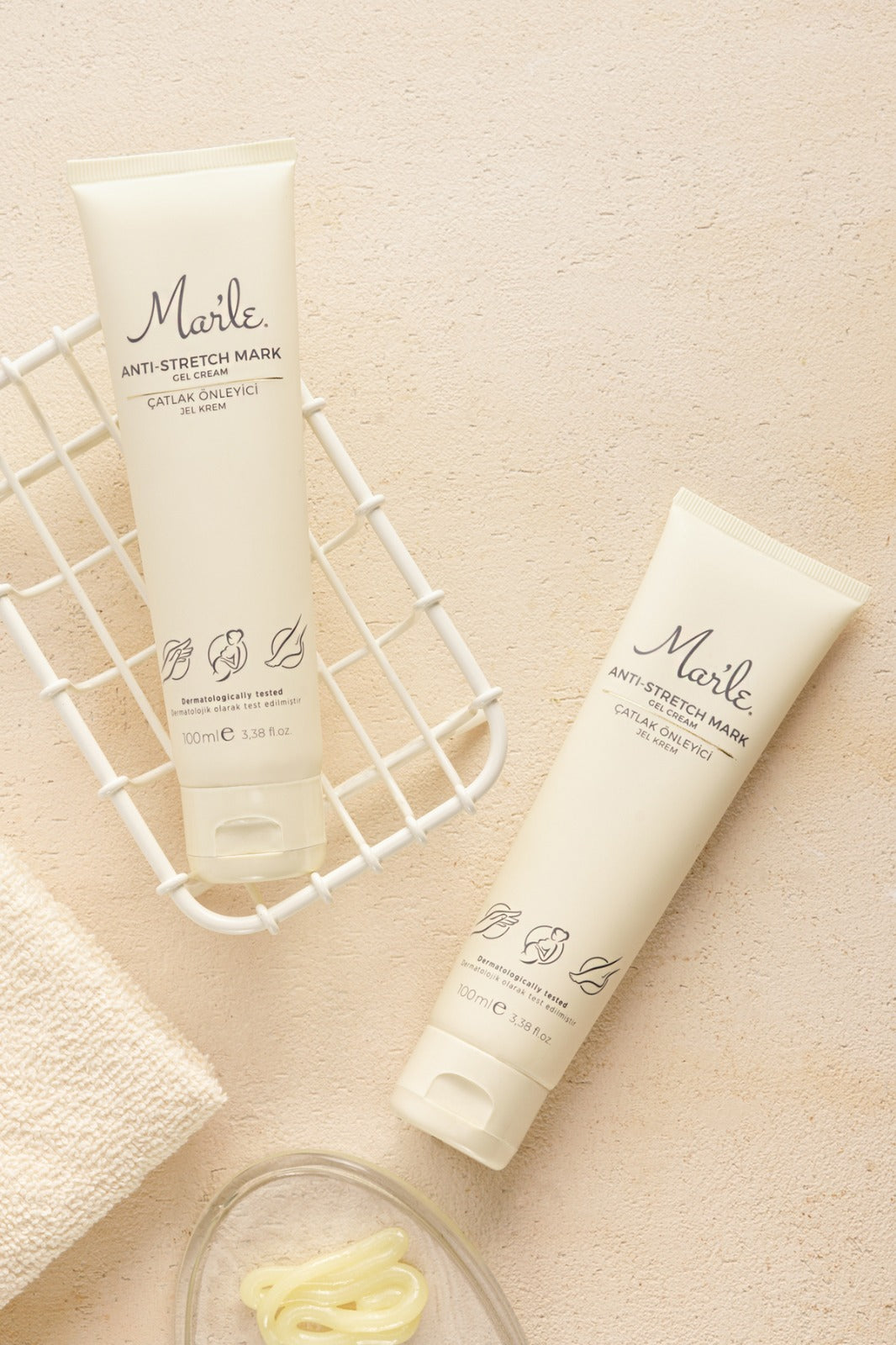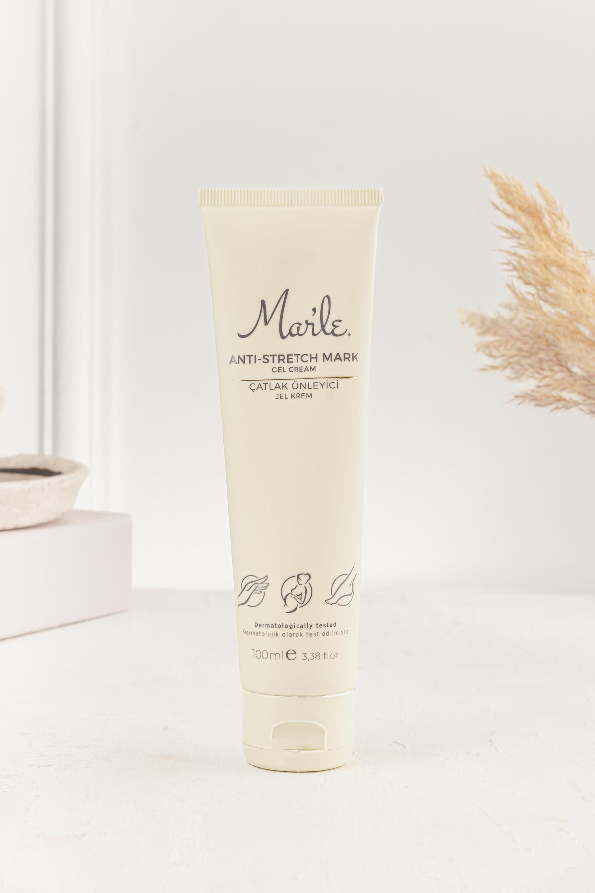 Mar’le Çatlak Önleyici Jel Krem, karın, basen, göğüs, el ve ayak bölgelerinde çatlak oluşumuna karşı cildi destekleyen, derinlemesine nem sağlayan ve elastikiyeti artıran özel bir formüle sahiptir. Hafif ve hızlı emilen jel-krem yapısı, cilde yapışkan bir his bırakmadan gün boyu nemli ve esnek kalmasına yardımcı olur. İçeriğindeki Kakao Yağı, Keten Tohumu Yağı, Kantaron Yağı, Jojoba Yağı, Badem Yağı, Avokado Yağı, Macadamia Yağı, Zeytinyağı ve E Vitamini, cilt bariyerini güçlendirerek kuruluğu giderir, cildi yoğun şekilde besler ve çatlak görünümünü azaltmaya destek olur. Cilt elastikiyetini koruyarak hamilelik, kilo değişimi veya yoğun fiziksel aktiviteler sırasında oluşabilecek çatlakların önlenmesine yardımcı olur.